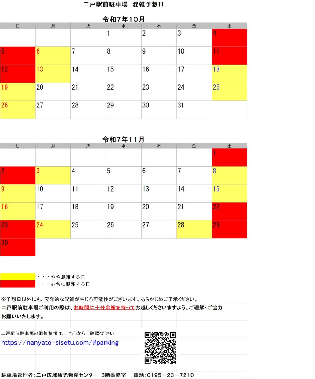 二戸駅前東口/西口駐車場 混雑予想について(令和7年10月・11月)