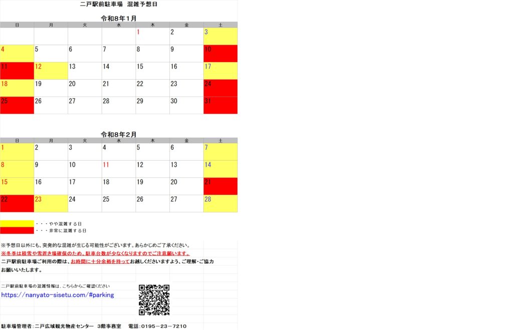 二戸駅前東口/西口駐車場 混雑予想について(令和8年1月・2月)