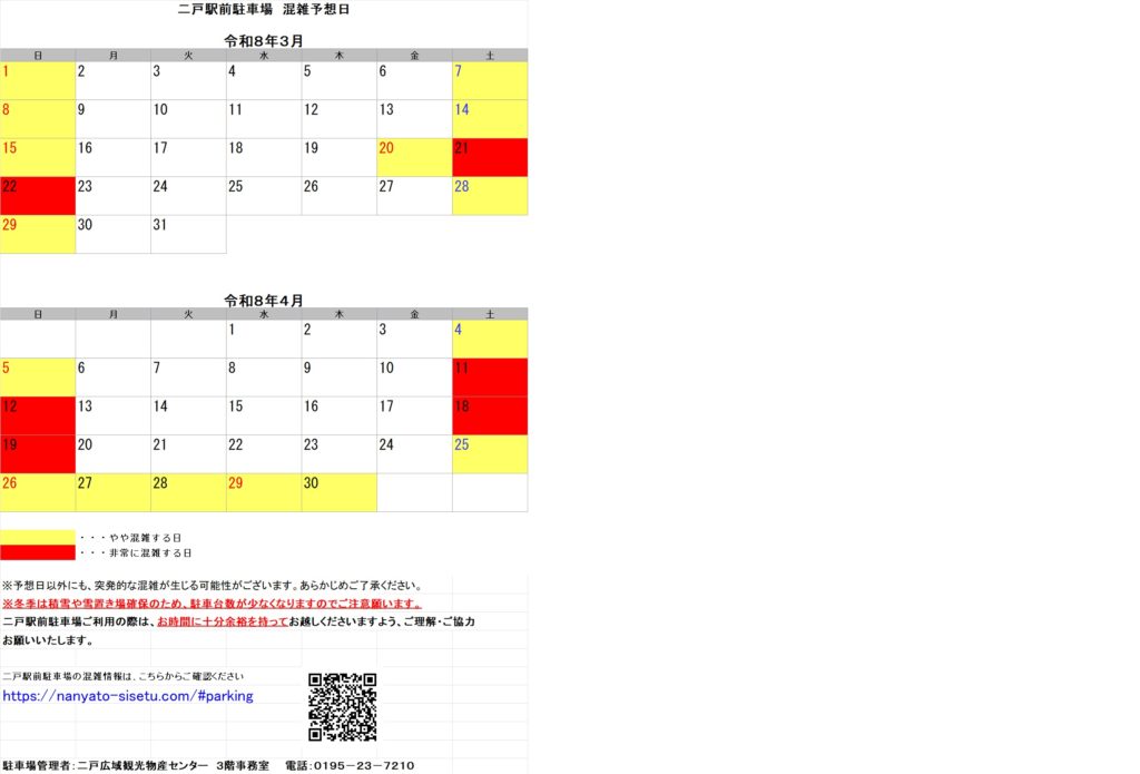 二戸駅前東口/西口駐車場 混雑予想について(令和8年3月・4月)